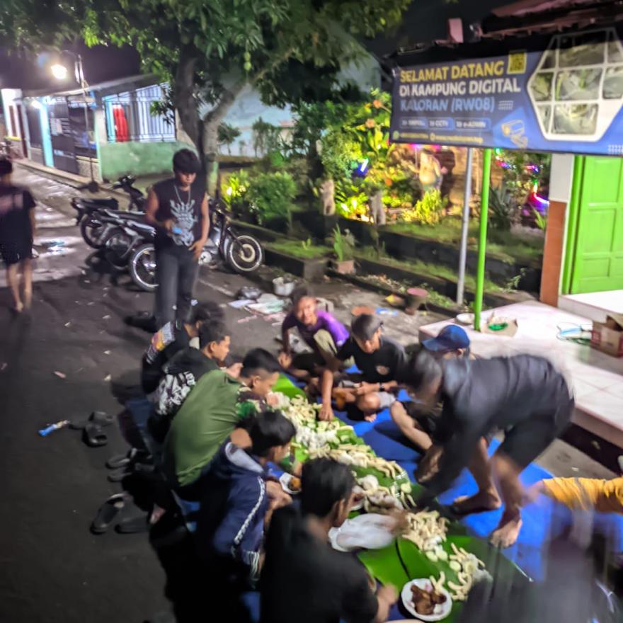 Malam semakin larut, namun suasana justru makin seru. Musik ringan dan obrolan hangat membuat acara semakin hidup. Semua pemuda terlihat menikmati kebersamaan malam itu ada yang sambil bercanda, ada yang membantu menyajikan makanan, dan ada pula yang sibuk mendokumentasikan momen seru tersebut. Tidak ada jarak di antara mereka, semua menyatu dalam suasana penuh kekeluargaan dan semangat pemuda yang positif.