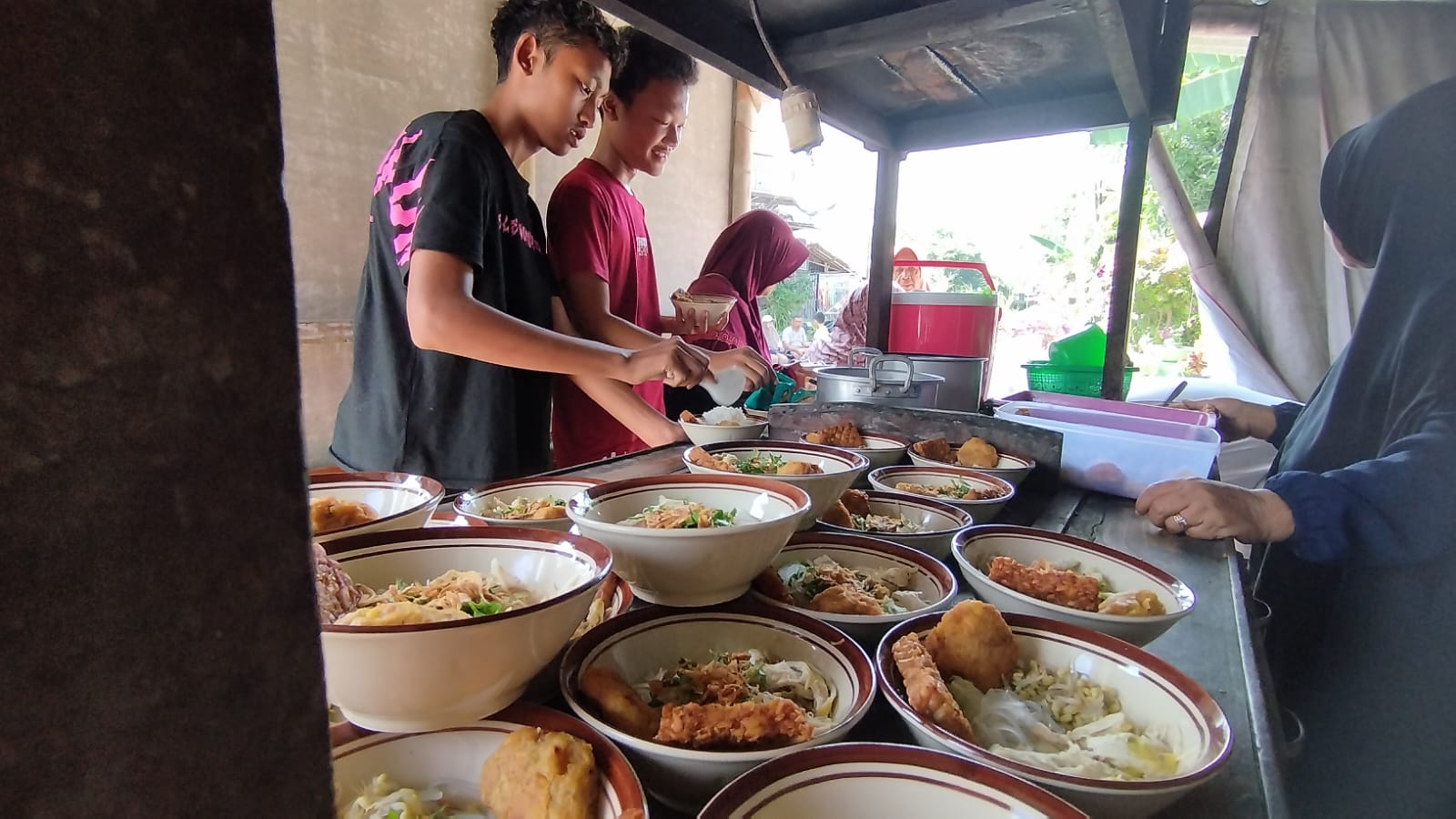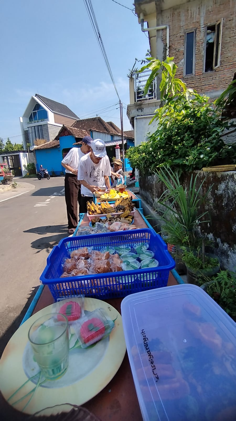 Tak hanya itu, suasana akrab semakin terasa ketika warga menikmati berbagai kudapan hasil donasi sukarela dari warga. Hidangan yang tersedia sangat beragam, mulai dari teh jumbo, air galon, ubi dan kacang rebus, risol mayo, kelepon, hingga aneka kue dan buah-buahan. Suasana makan bersama ini menjadi simbol nyata gotong royong dan kekeluargaan.