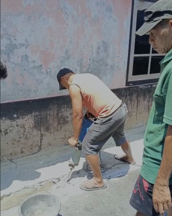 Masalah ini sempat dikelola secara mandiri oleh keluarga Bapak Wakijo, namun seiring seringnya hujan deras dan bertambahnya debit air, genangan semakin sulit dikendalikan. Melalui rapat RW pada bulan Agustus dan September 2025, warga akhirnya sepakat bahwa solusi terbaik adalah membongkar kembali cor beton tersebut agar saluran air menjadi lebih lebar dan lancar ke arah barat. Tentu pekerjaan ini tidak ringan, karena cor beton yang sudah mengeras seperti “benteng kokoh” sulit dibongkar dengan alat seadanya. Syukurlah, dengan bantuan alat pemecah beton dari Bapak Tri—mantan RW 08—hambatan tersebut bisa diatasi, dan pekerjaan berat akhirnya berjalan lancar.